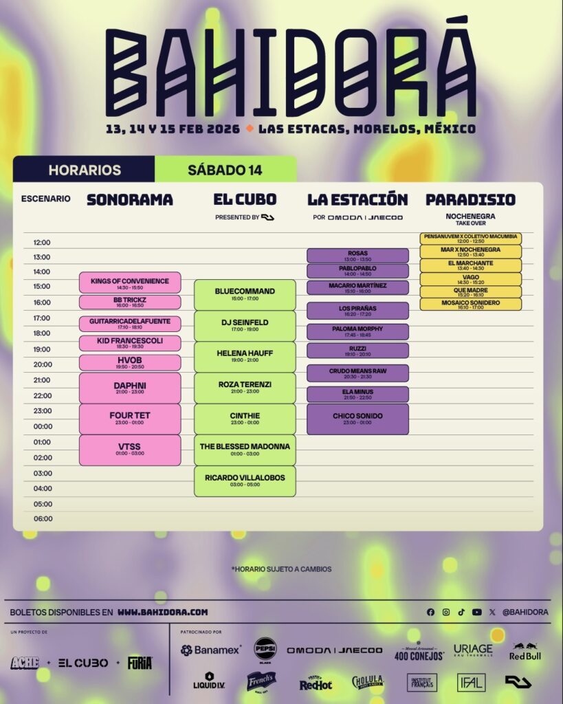 El festival Bahidorá ha anunciado los horarios de su edición 2026. La cita será los días 13, 14 y 15 de febrero, regresando a su ya emblemática sede en Las Estacas, Morelos, un entorno natural caracterizado por sus ríos cristalinos y su selva exuberante.