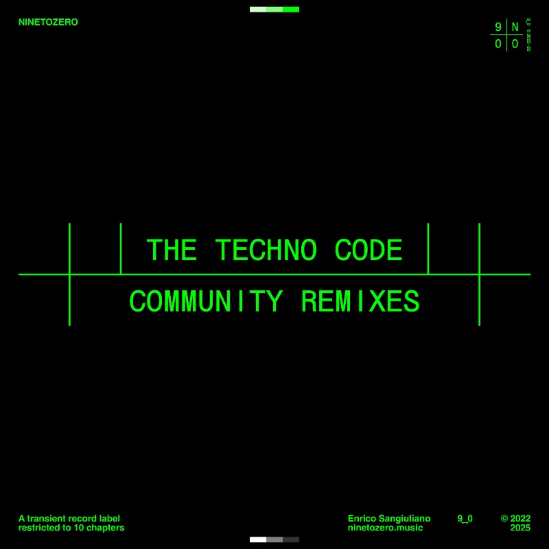 Enrico Sangiuliano lanzó una convocatoria para nuevos talentos con el fin de remezclar su pieza “The Techno Code”, un manifiesto sonoro que celebra la esencia del techno. De esa iniciativa surge The Techno Code (Community Remixes), un EP de cinco pistas publicado en su prestigioso sello NINETOZERO, que recoge las mejores reinterpretaciones enviadas por artistas emergentes de distintas partes del mundo.