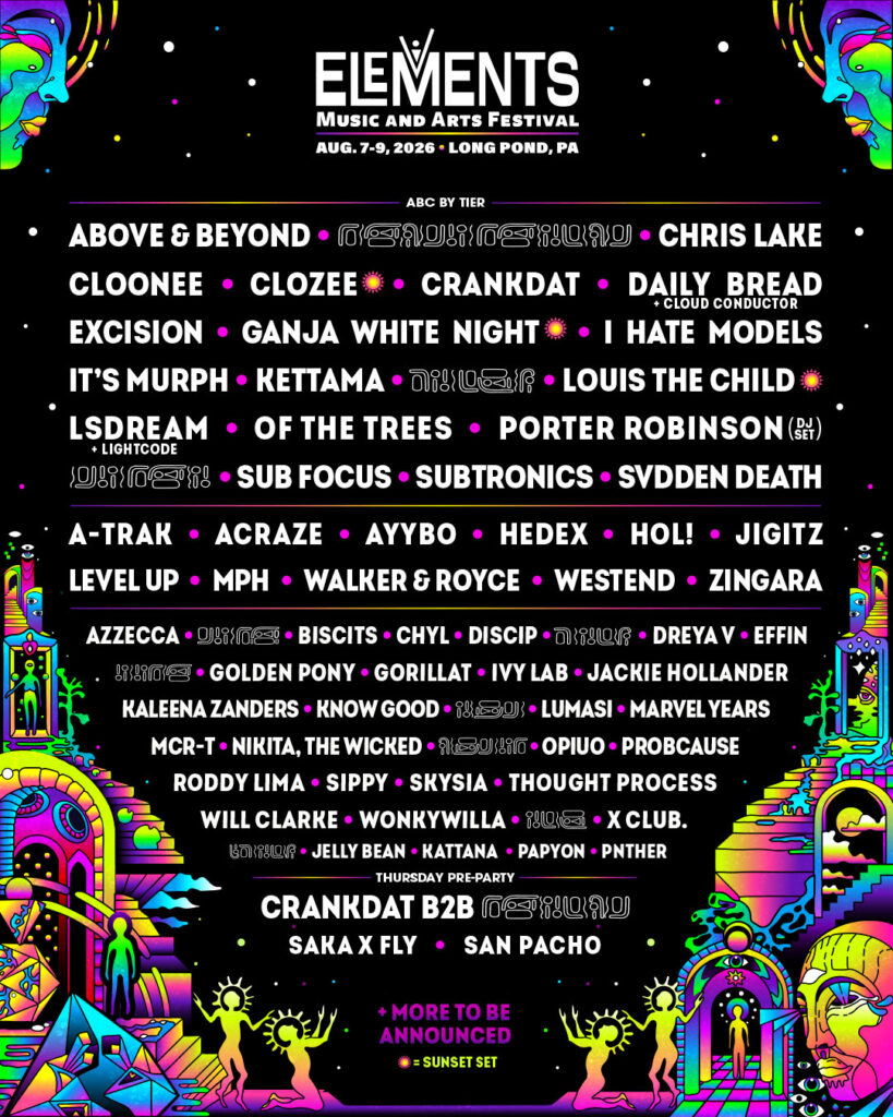 Entre los nombres destacados se encuentran Porter Robinson (DJ Set), Above & Beyond, Subtronics, Chris Lake, Excision, Sub Focus, Of The Trees y CloZee, además de presentaciones especiales como sunset sets y colaboraciones únicas. El festival contará con sus cuatro escenarios temáticos —Fire, Earth, Air y Water—, incluyendo una renovación total del Fire Stage para 2026. Más allá de la música, Elements ofrecerá instalaciones artísticas, Vibe Villages creadas por fans, programas de bienestar y un enfoque continuo en la sostenibilidad. Los boletos para la fase uno ya están disponibles y se esperan más anuncios en los próximos meses.