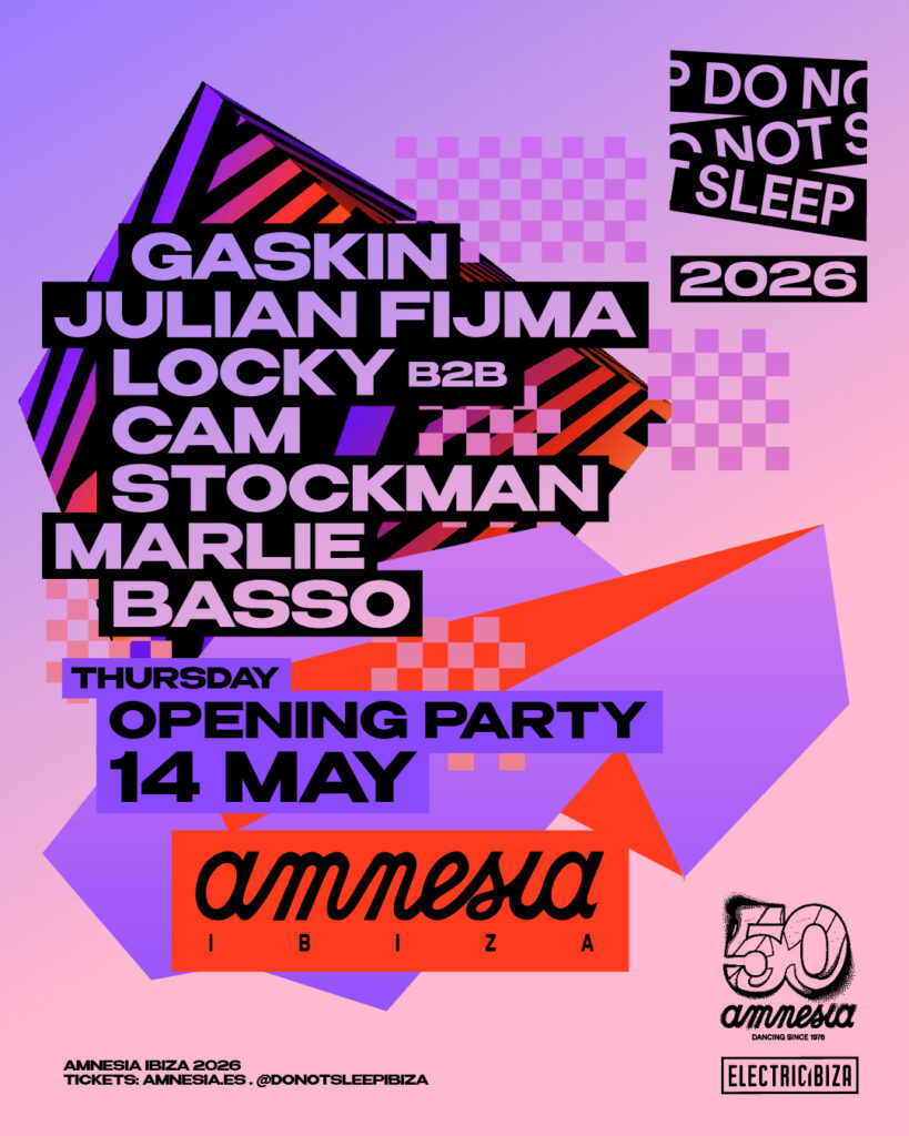 Do Not Sleep, referente del underground moderno de Ibiza, regresa a Amnesia ofreciendo lo mejor del Tech House y Deep-Tech con DJs de renombre. En su año de aniversario, la fiesta inaugurará la temporada con siete fechas entre mayo y junio, manteniendo su esencia de rave auténtica, energía intensa y música sin artificios. La Opening Party contará con artistas como Gaskin, Julian Fijma, Locky B2B Cam Stockman, Marlie y Basso.