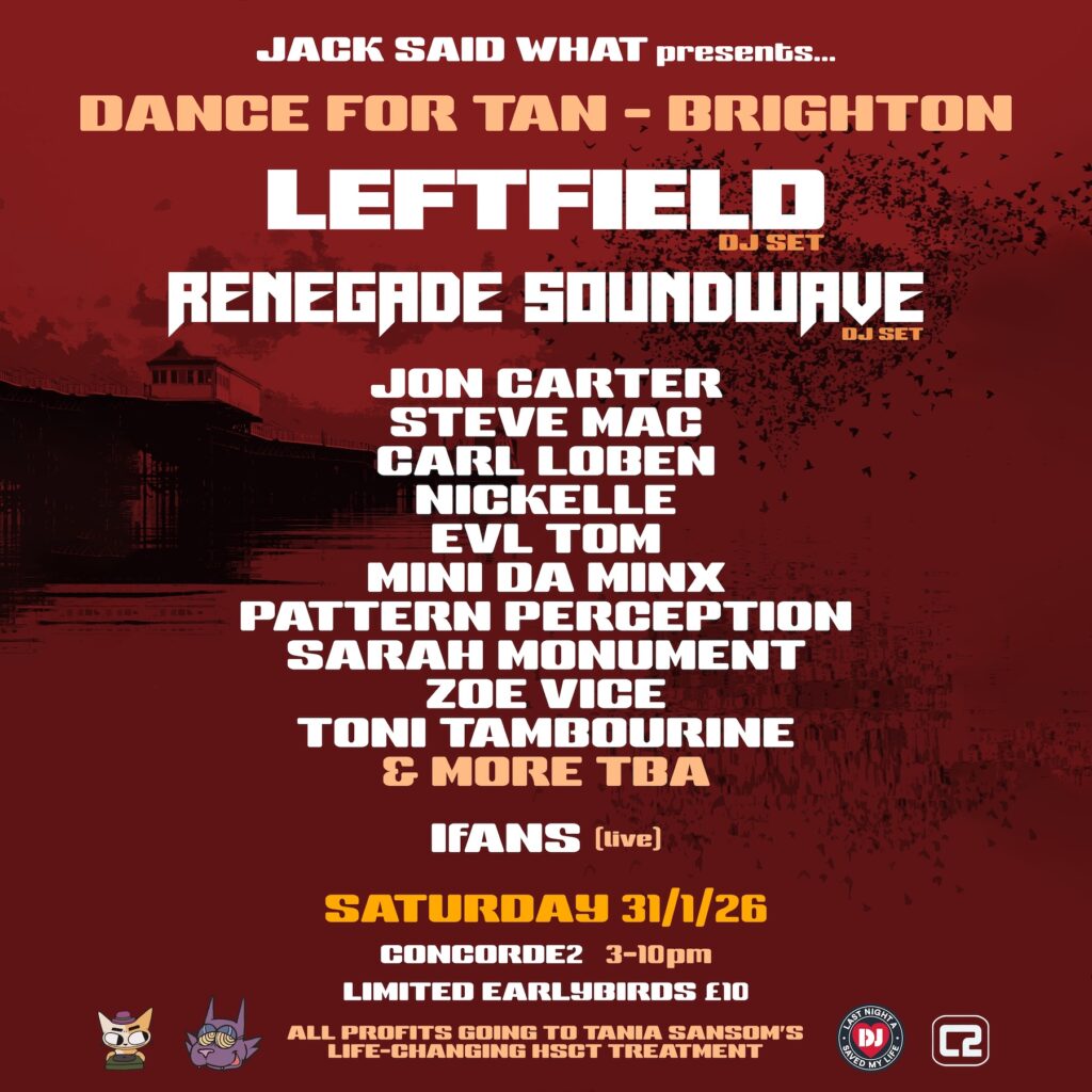 “Dance For Tan – Brighton” es un evento musical solidario que se celebrará en Concorde 2 Brighton, organizado por el sello Jack Said What. Se trata de un day rave que tendrá lugar el próximo 31 de enero con una amplia programación de DJs y actuaciones electrónicas en directo, cuyo objetivo es recaudar fondos para el cuidado continuo de Tania Sansom, residente de Brighton que vive con esclerosis múltiple.