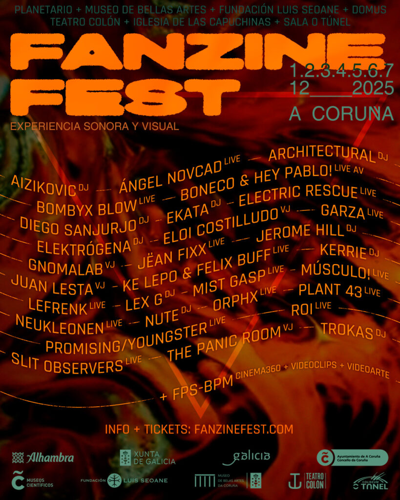 La 11 edición de Fanzine Fest 2025 consolida a La Coruña como un referente internacional de la creación electrónica y audiovisual. Del 1 al 7 de diciembre, el festival reunirá a artistas de distintas generaciones y procedencias para ofrecer una experiencia sonora y visual inmersiva que conecta la vanguardia global con el talento gallego y estatal. Este año amplía su presencia en la ciudad incorporando tres nuevos espacios: el Museo de Bellas Artes, la Iglesia de las Capuchinas y el Teatro Colón, que se suman a sedes habituales como la Domus, la Fundación Luis Seoane y la Sala O Túnel.