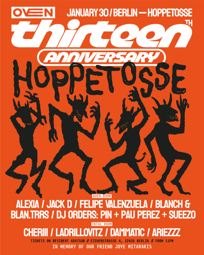 La celebración se desarrollará en cuatro fechas especiales: tres noches consecutivas en Oven Valencia, del 22 al 24 de enero, y una última cita internacional el 30 de enero en Berlín, en la sala Hoppetosse. El aniversario contará con un cartel diverso que reúne a DJs y artistas de proyección internacional y local, con propuestas que transitan entre el house, el techno, el disco y la electrónica experimental. Estas fechas buscan celebrar no solo la música, sino también la red de artistas, amigos y público que ha acompañado a Oven a lo largo de sus trece años de historia.