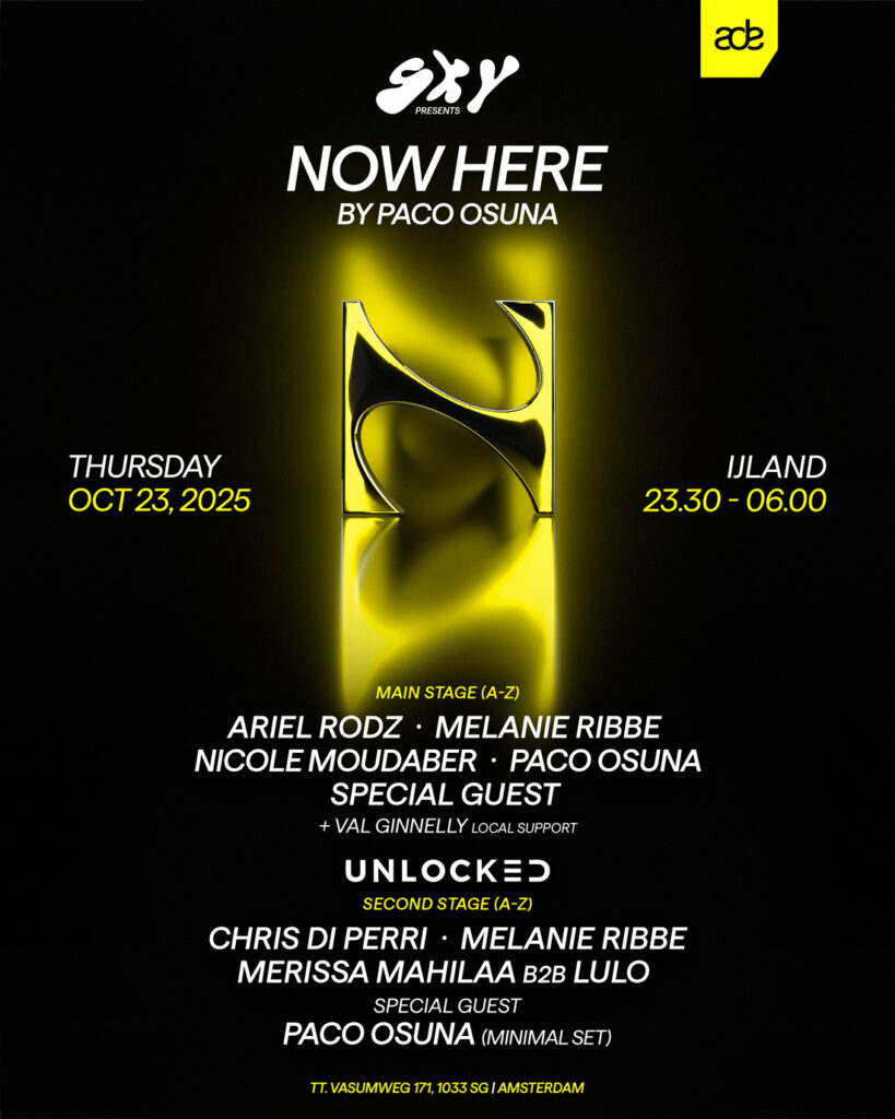 Now Here incorpora además la participación de UNLOCKED, el proyecto de Melanie Ribbe, que curará el segundo escenario con una programación centrada en el minimal tech, estilo que también explorará el propio Osuna en un set especial. Este formato de doble identidad musical, ya probado con éxito en Off Sonar, consolida la visión de Osuna de crear un espacio libre, auténtico y conectado con el público. Tras su paso por Ibiza, Tenerife y Nueva York, el concepto continuará su expansión con próximas fechas en Madrid, Liverpool, Rosario, Buenos Aires, Cali y Medellín, reafirmando su crecimiento como una marca global dentro de la escena electrónica